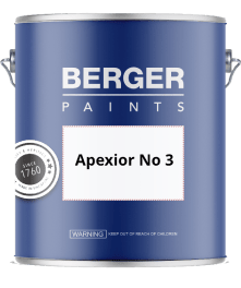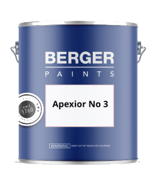 Berger Apexior No. 3 is an anti-corrosive coating for steel and concrete in marine environments, offering low moisture permeability, excellent water repellence, and resistance to weathering, oxidation, mild acids, and alkalis. It can be applied by brush, roller, or spray and is suitable for surfaces in contact with fresh or salt water.