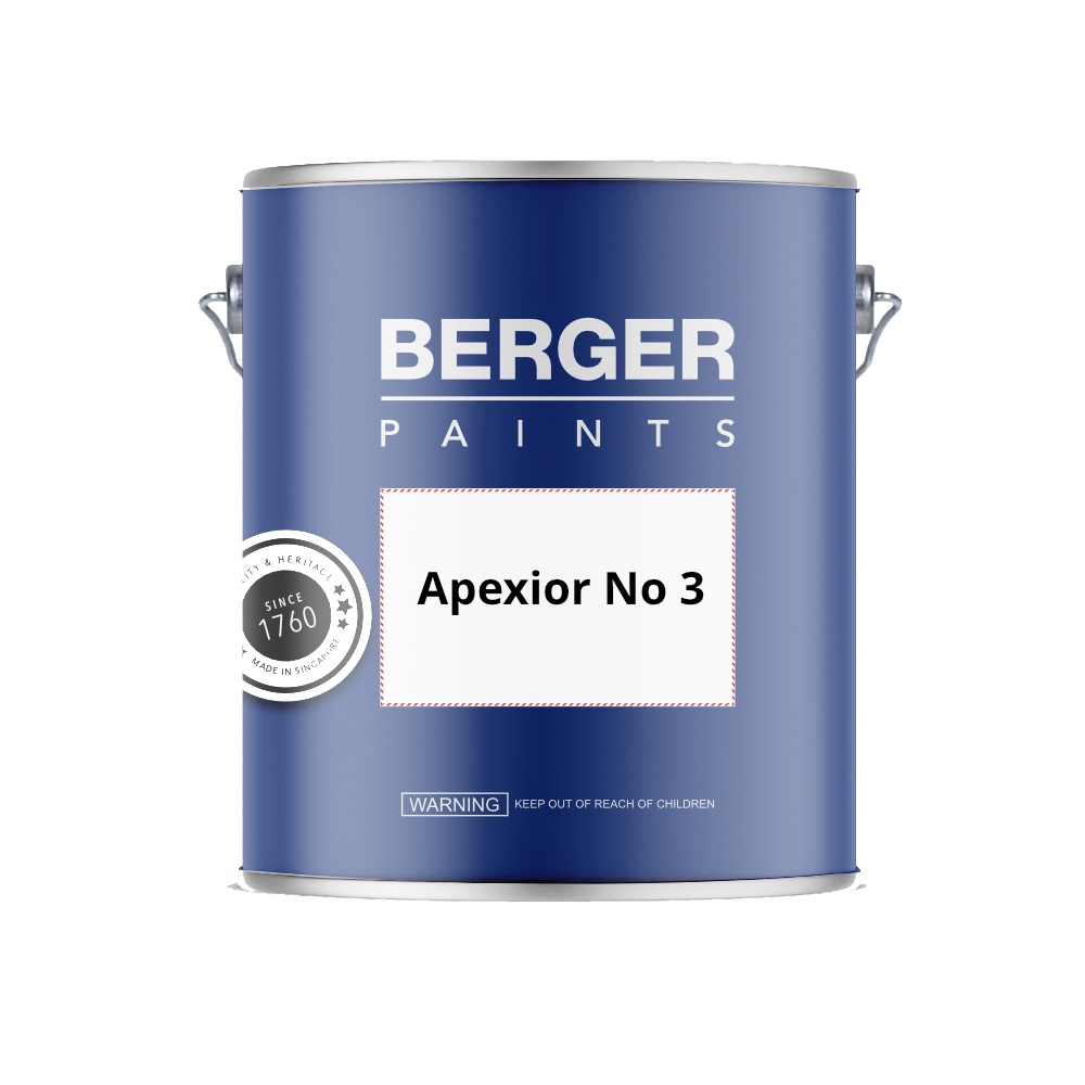 Berger Apexior No. 3 is an anti-corrosive coating for steel and concrete in marine environments, offering low moisture permeability, excellent water repellence, and resistance to weathering, oxidation, mild acids, and alkalis. It can be applied by brush, roller, or spray and is suitable for surfaces in contact with fresh or salt water.